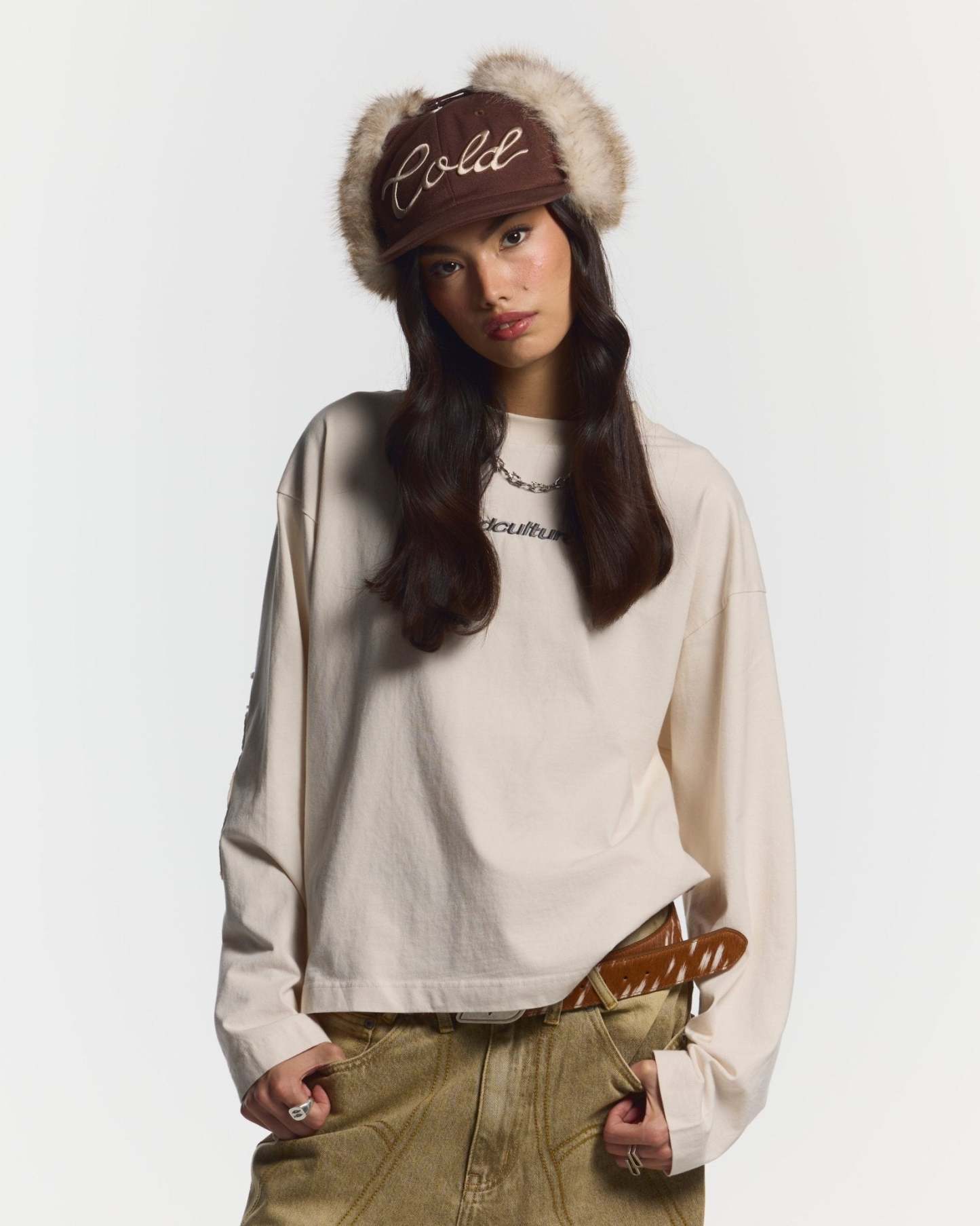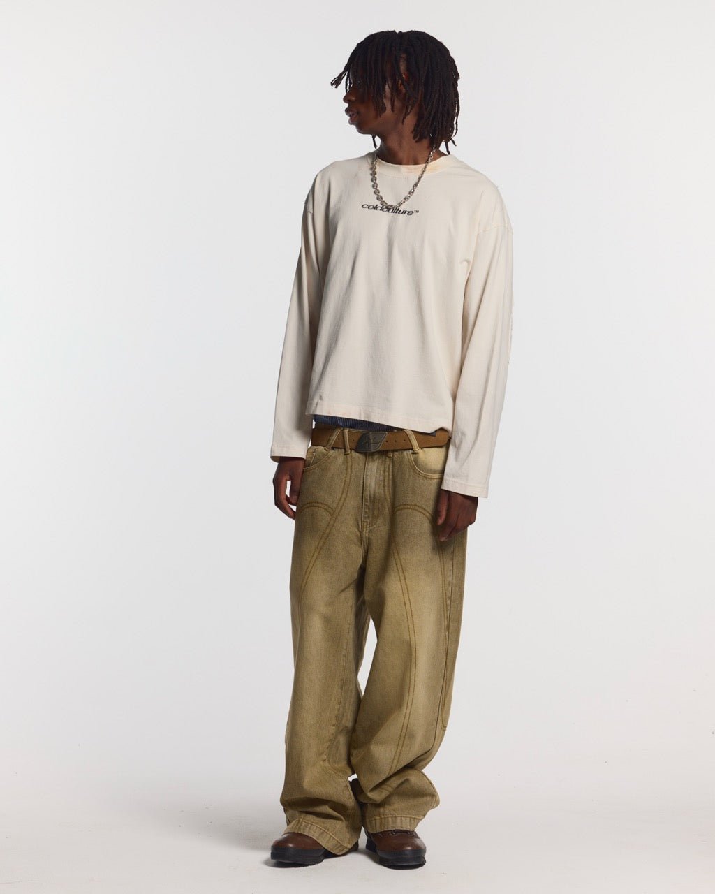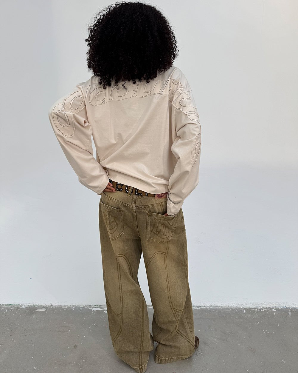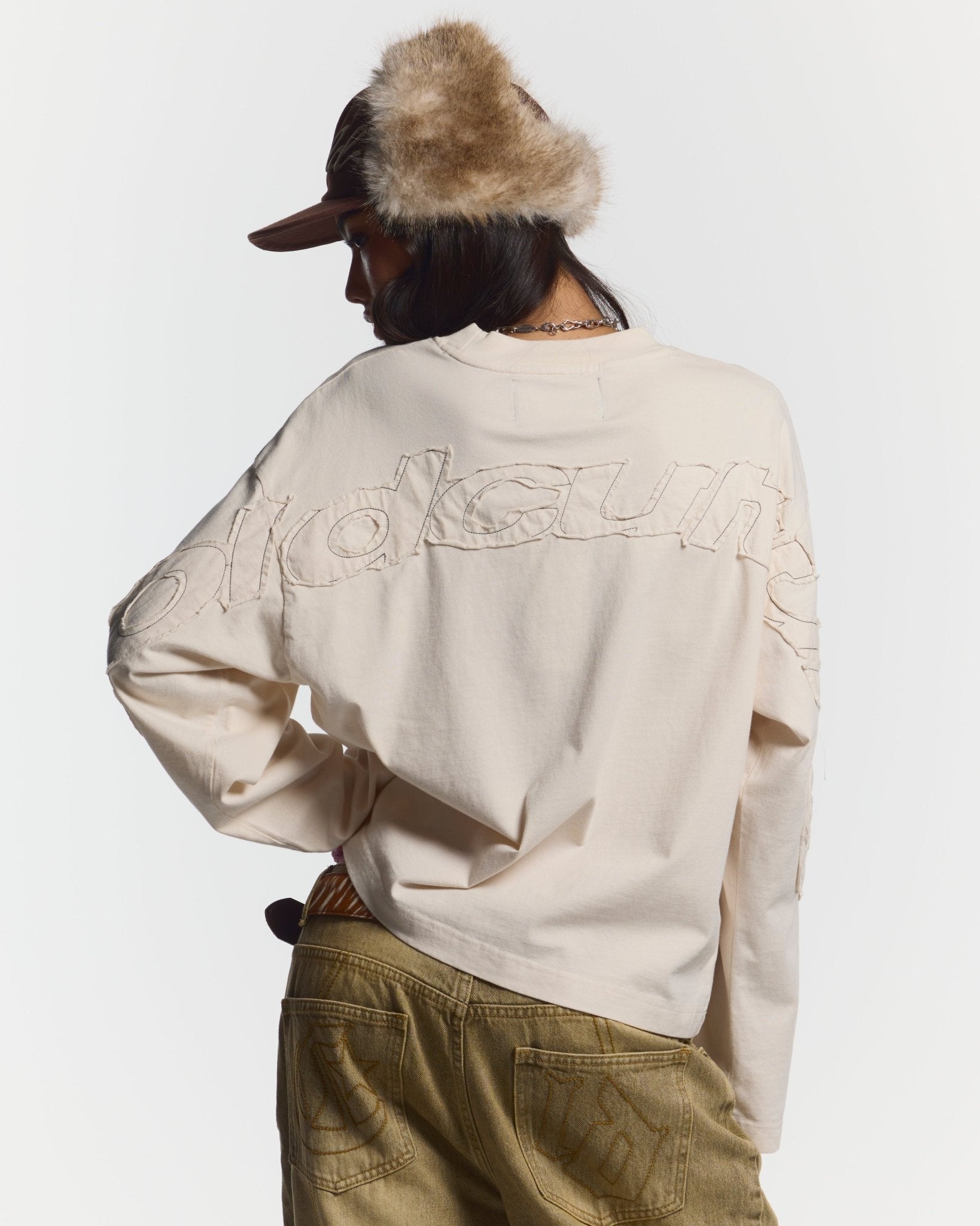 DISTRESS CURVED LONGSLEEVE LIGHT GREY