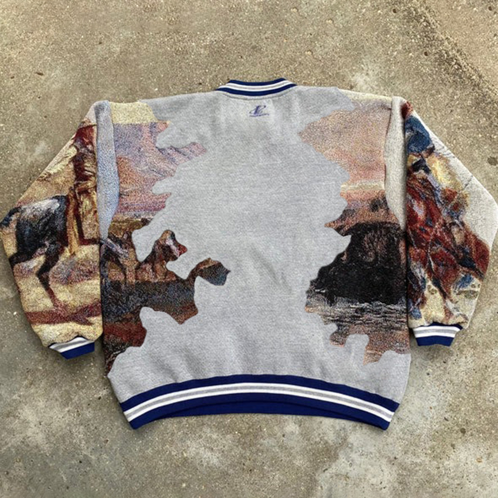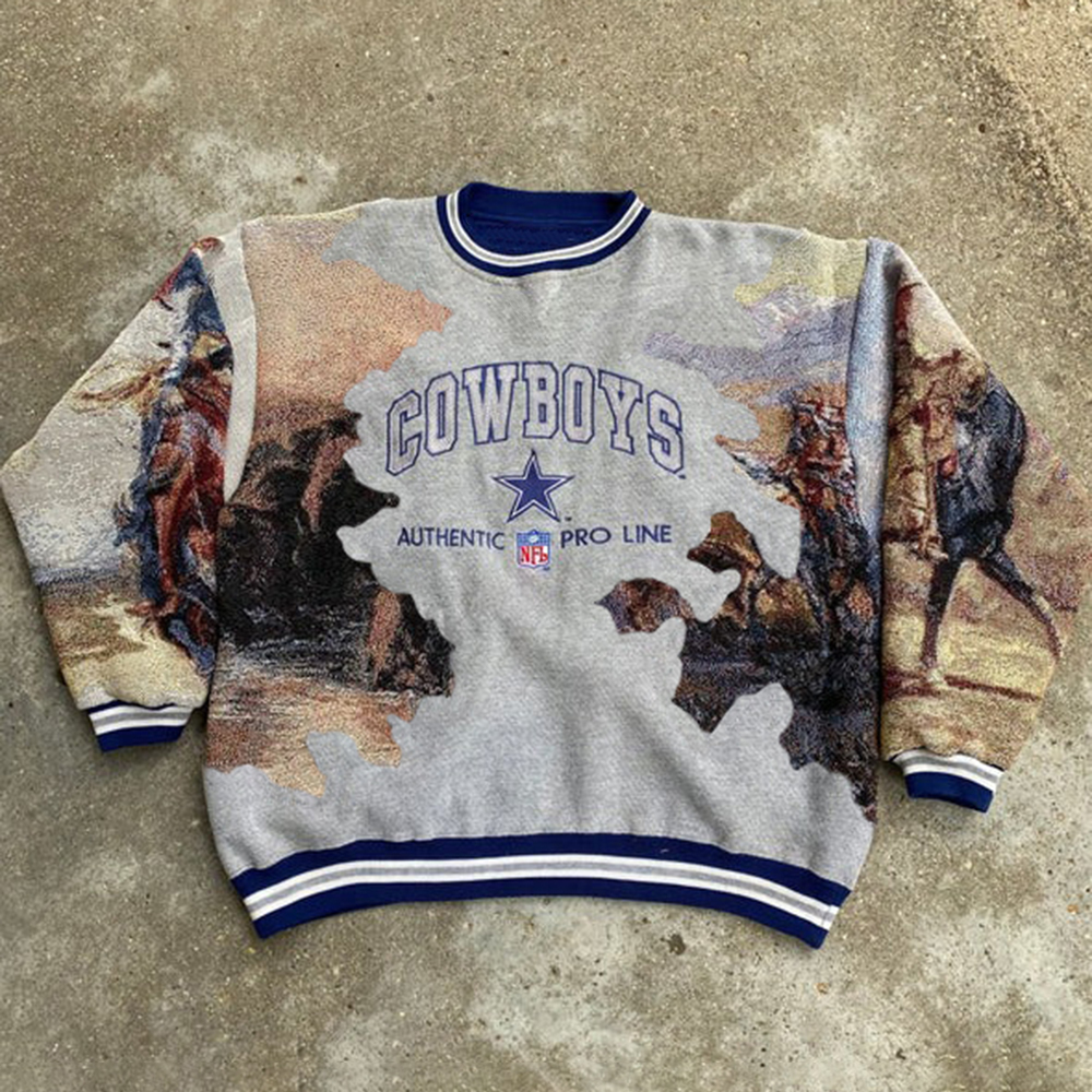 Vintage Cowboy Print Long-Sleeve Sweatshirt